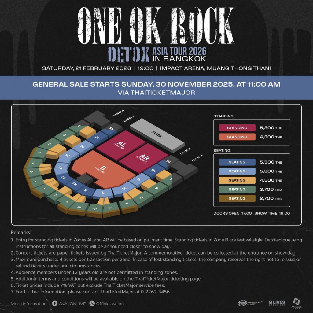 主题:ONE OK ROCK DETOX Asia Tour 2026 in Bangkok